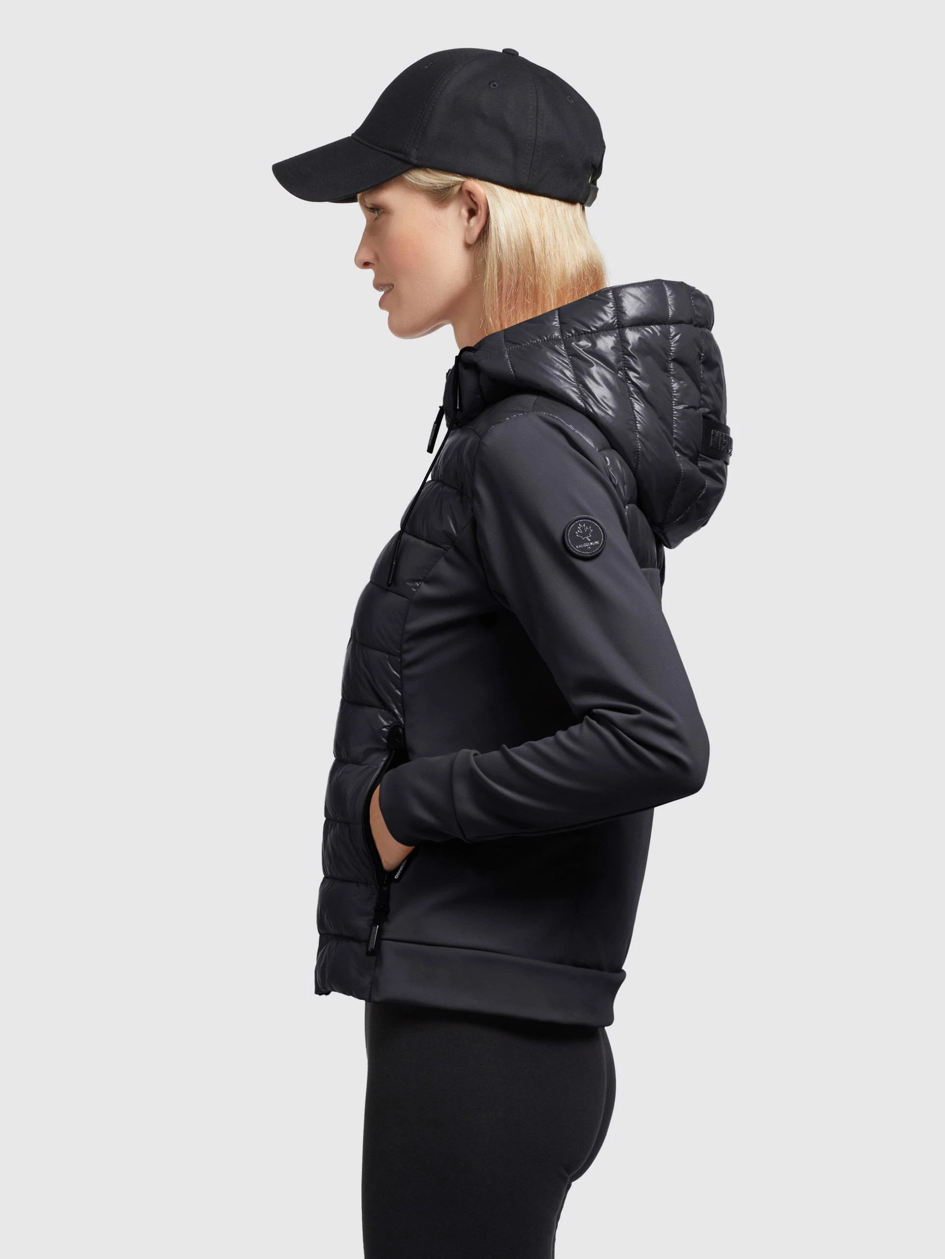 Die leicht glänzende khujo Jacke GHITA SHINY mit abnehmbarer Kapuze, einem elastischen Kordelzug und einer leichten Wattierung in der gesteppten Vorderseite, Kapuze und der Passe im Rückenteil. Dank einem Reißverschluss und seitlichen Reißverschlusstaschen mit einer wasserabweisenden Beschichtung, einer Windschutzblende und einem verstärkten Stehkragen bist Du mit dieser hüftlangen Steppjacke gut ausgestattet.