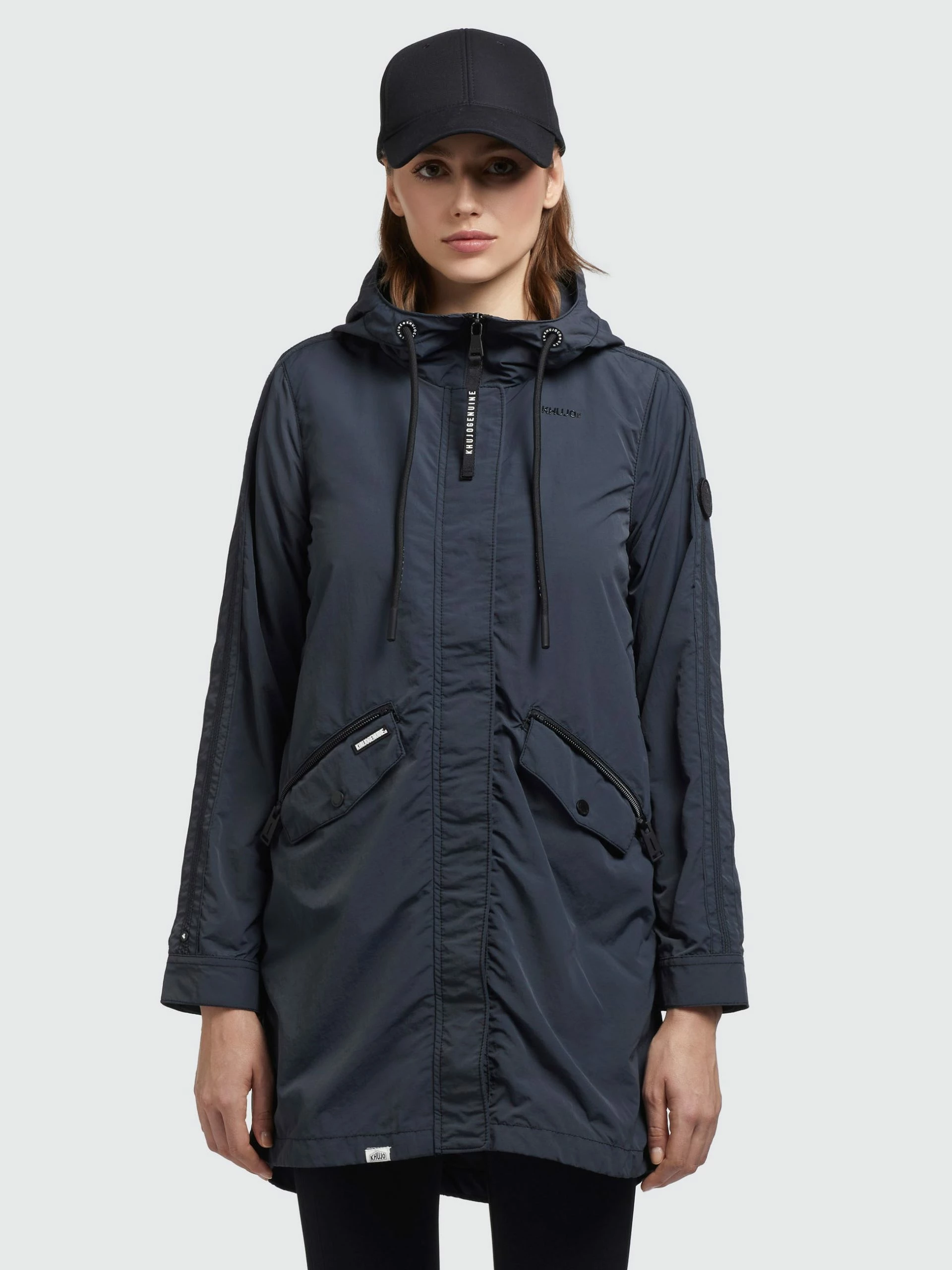 Der Parka von Khujo ist perfekt fuer die Übergangszeit.. Er hat einen Zwei-Wege-Reissverschluss mit einer Abdeckleiste und verschliessbare Taschen. Die Kapuze hat einen Tunnelzug und kann somit verstellt werden. Der Parka hat als Details am Ruecken einen Deko-Reissverschluss und am Ärmelabschluss Druckknoepfe.