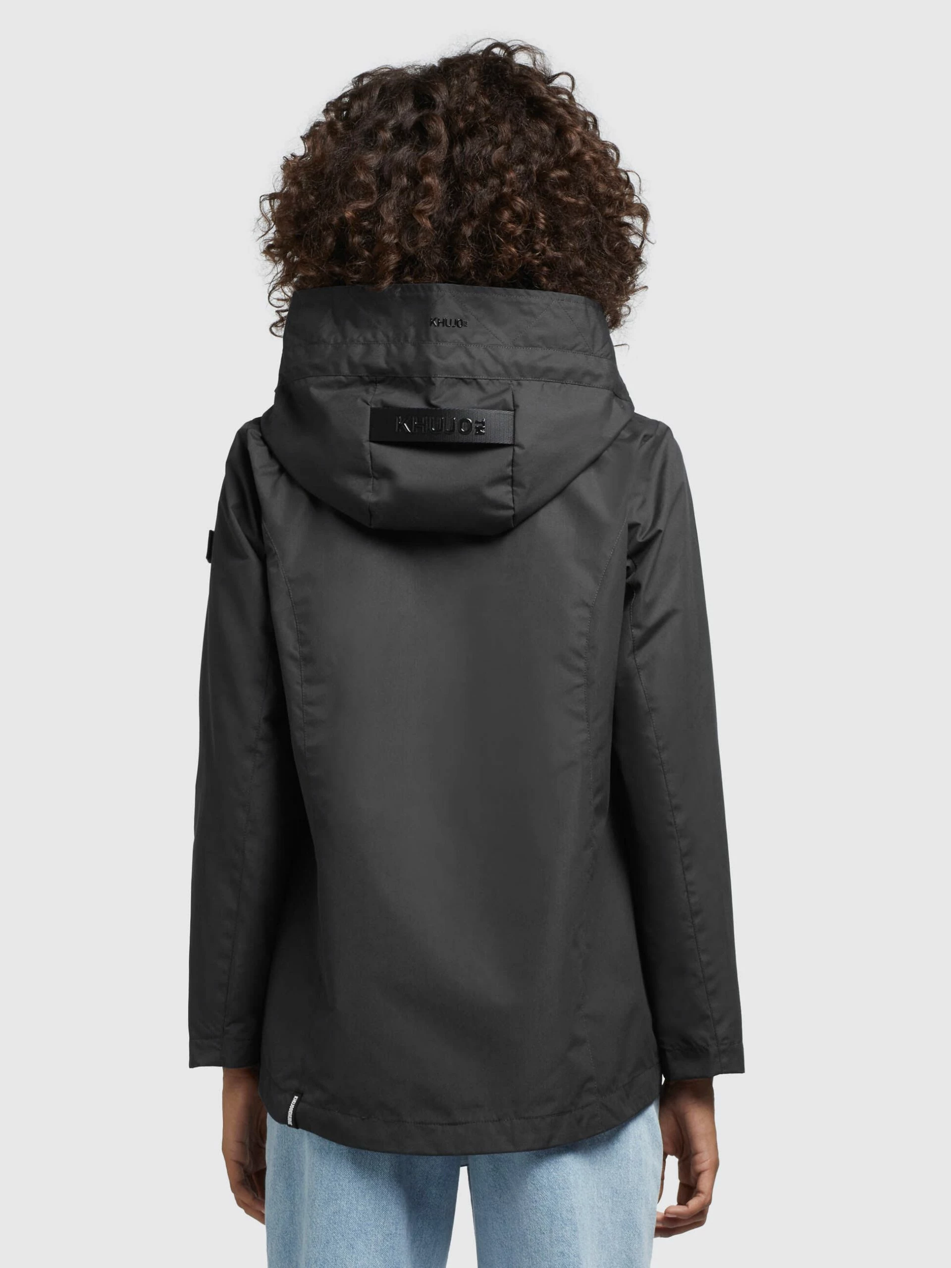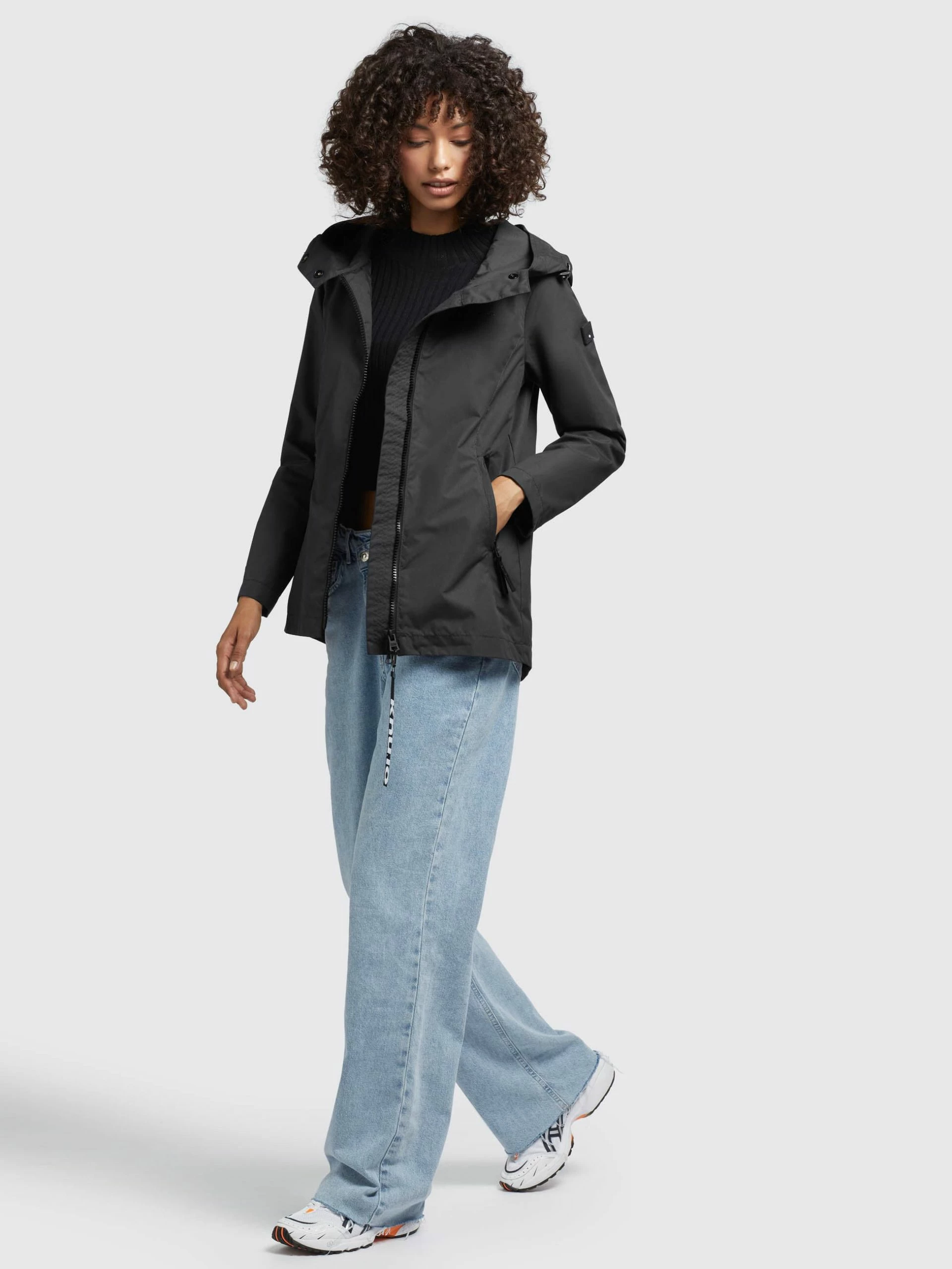 Die große, hoch schließende Kapuze mit elastischem Kordelzug und einer Logo-Applikation gibt der khujo Jacke JUNEA einen uerwechselbaren Look. Das leichte Innenfutter sorgt bei dieser Sommerjacke für besonders angenehmen Tragekomfort. Die seitlichen Eingrifftaschen mit wasserabweisenden Reißverschlüssen und der Zwei-Wege-Reißverschluss bezeugen einmal mehr die Leidenschaft für Details von khujo.