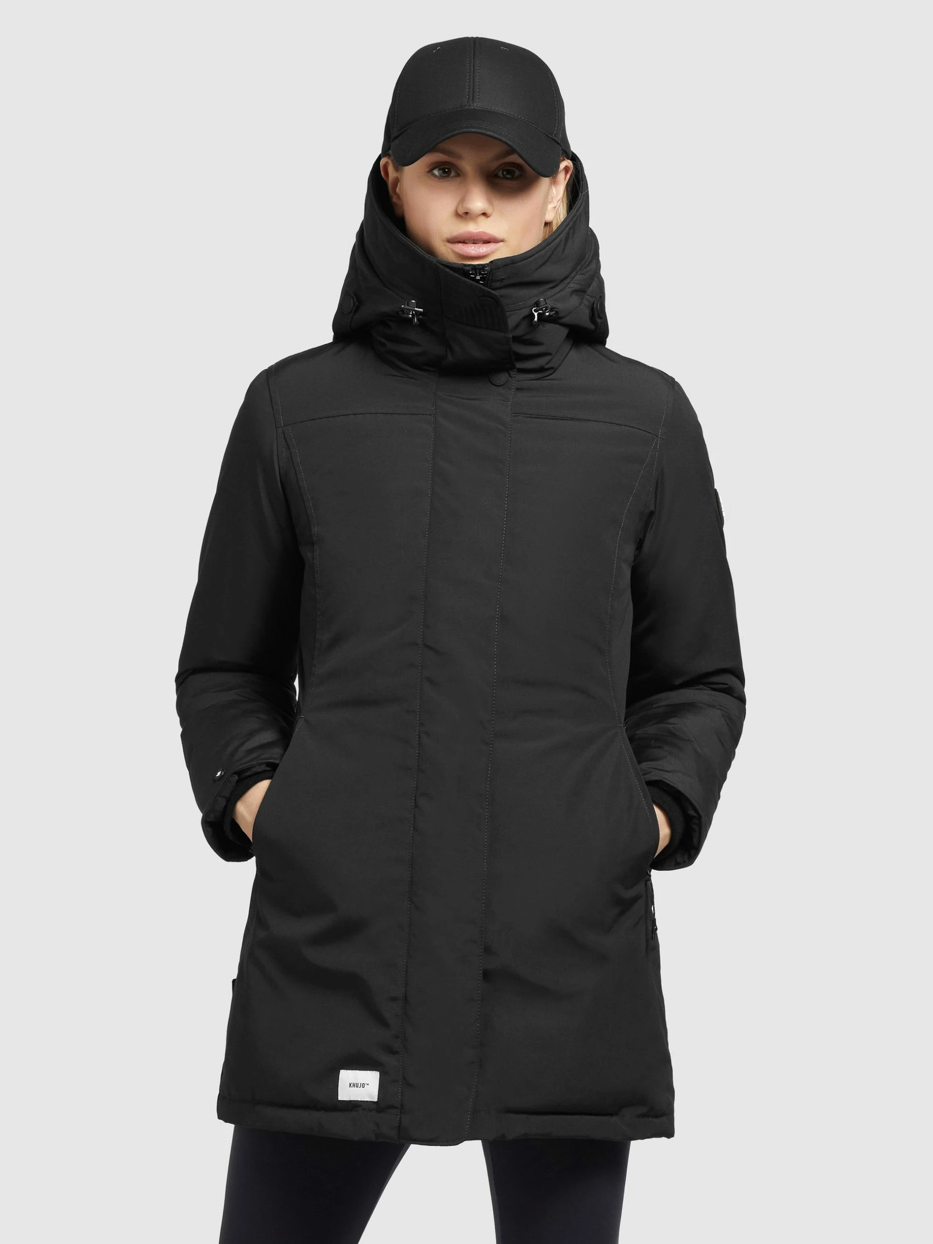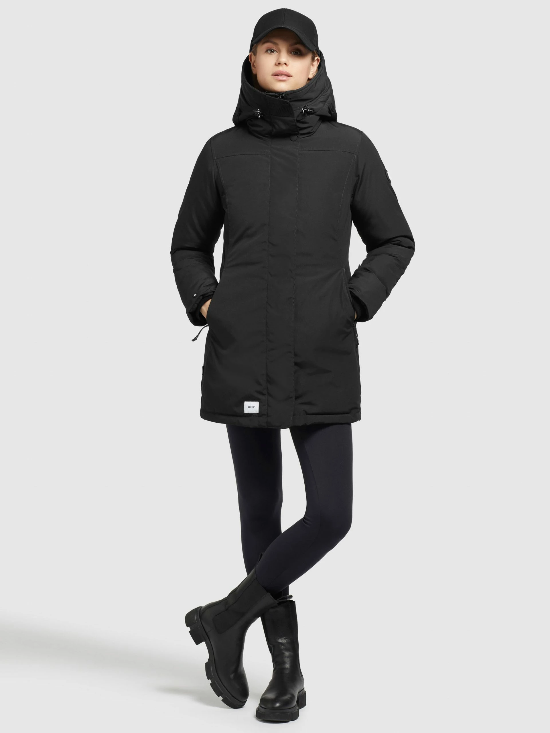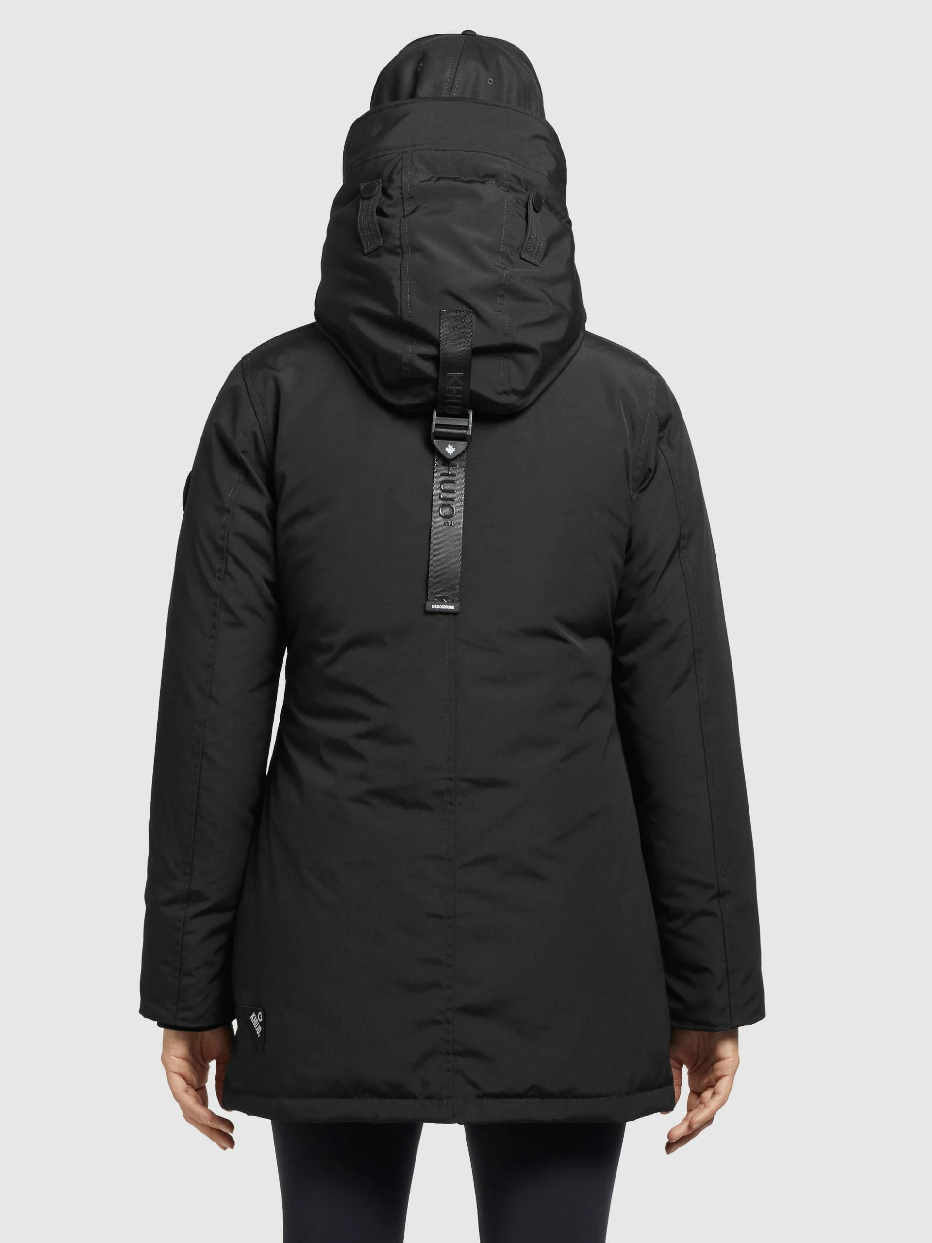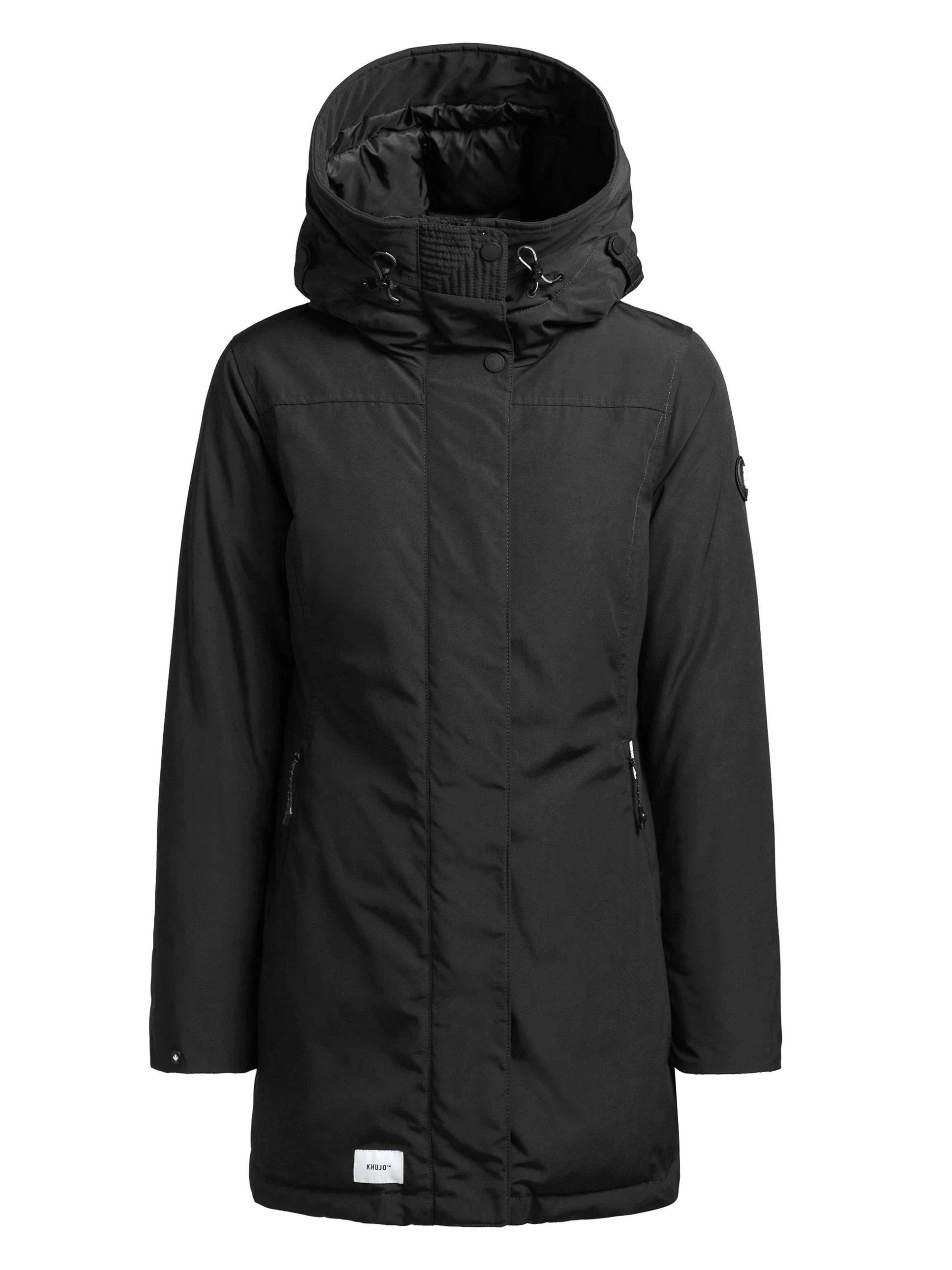 Dank dem cleanen Design lässt sich die leicht taillierte khujo Jacke KANDA2 zu jedem winterlichen Outfit stylen. Eine verstellbare und hoch schließende Kapuze, eine Kombination aus Reißverschluss und Magnetknopfleiste, elastische Kordelzüge an der Kapuze und der Taille, Taschenbeutel aus Fleece und Rippstrickbündchen am Ärmelfutter halten Wind und Wetter zuverlässig ab. Dieser einfarbige Parka ist zudem mit integrierten und verstellbaren Rucksackgurten ausgestattet.