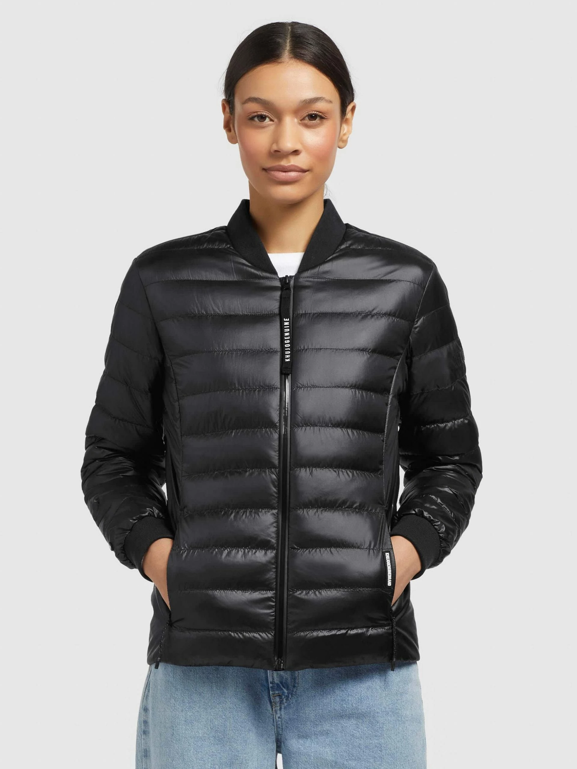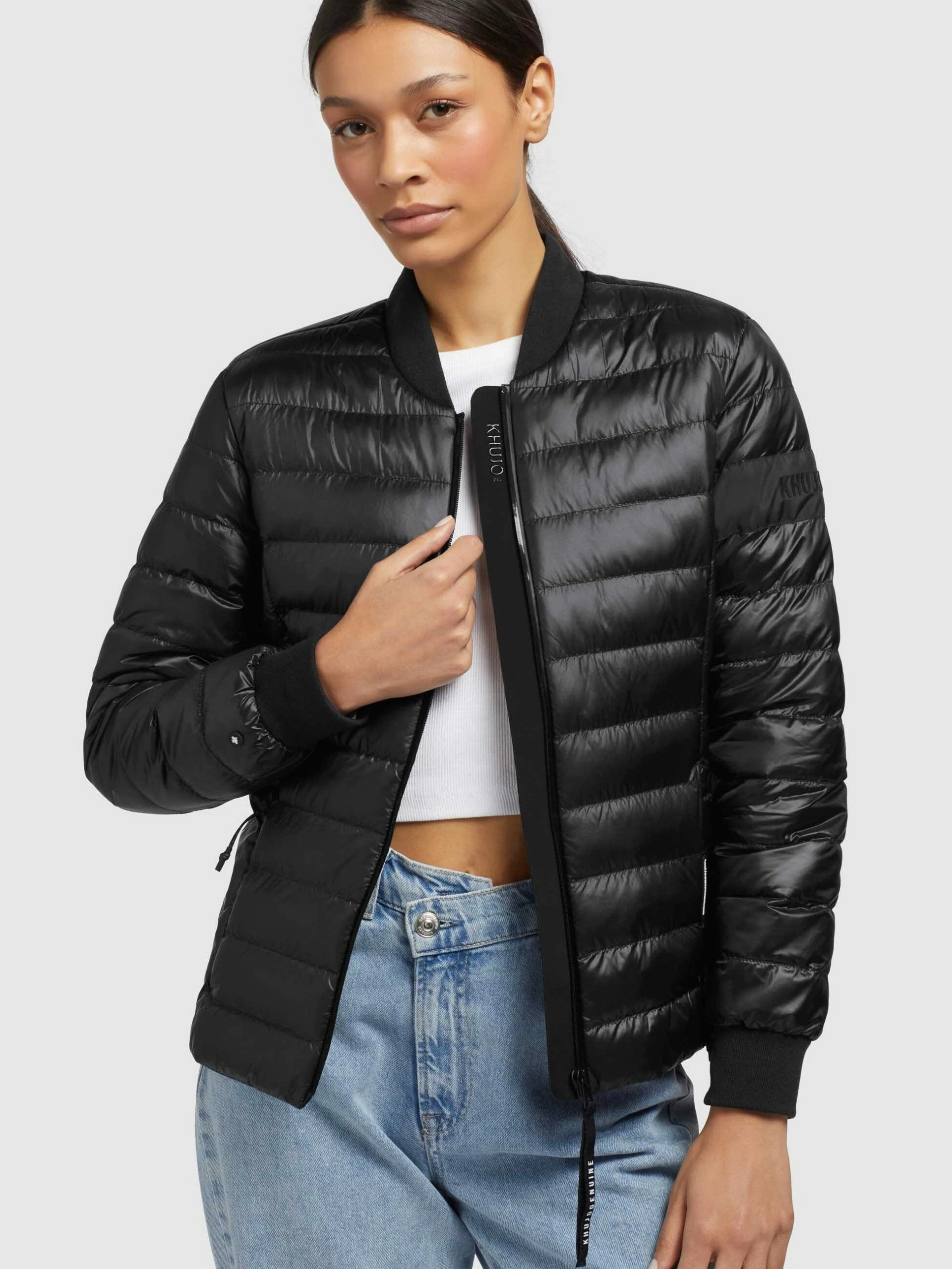 Die kurz geschnittene, leicht glänzende khujo Jacke MAUDE SHINY mit geripptem Kragen, einer leichten Wattierung und einem Reißverschluss mit wasserabweisender Beschichtung kommt im athleisure Look, der sich prima kombinieren lässt. Dank einer Windschutzblende und gerippten Bündchen, seitlichen Nahttaschen mit Reißverschluss und einer Innentasche bietet die Steppjacke im Regular Fit ausreichend Stauraum für unterwegs.