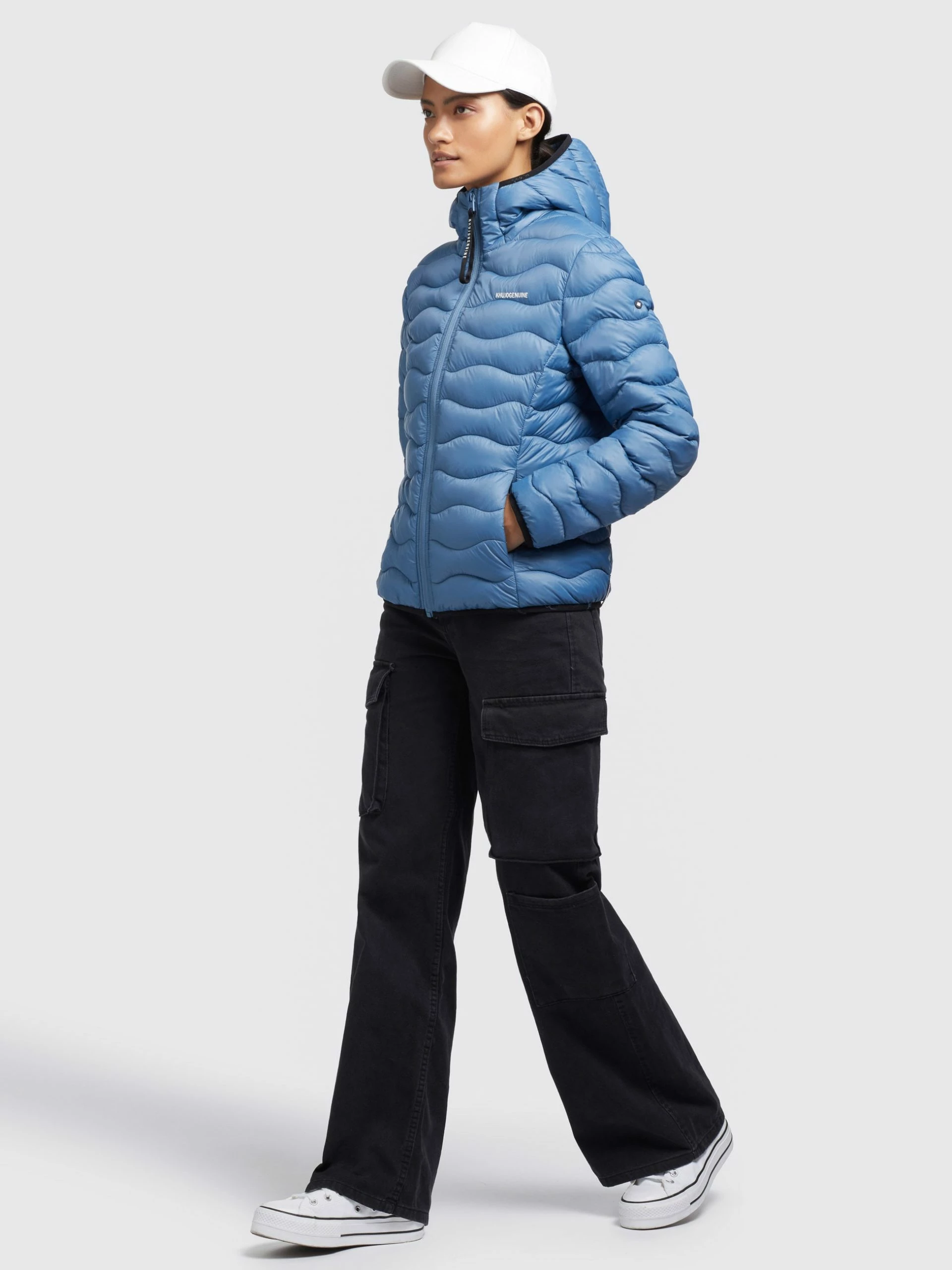 Die hüftlange khujo Jacke NANNA im Reguar Fit mit hoch schließender Kapuze, gestepptem Wellenmuster und einer leichten Wattierung präsentiert sich minimalistisch und sportlich zugleich. Dank einem Reißverschluss mit Kinnschutz, seitlichen Eingrifftaschen mit Reißverschluss, zwei Innentaschen und elastischen Bündchen an Ärmeln und Saum bist Du mit dieser Steppjacke optimal ausgestattet.