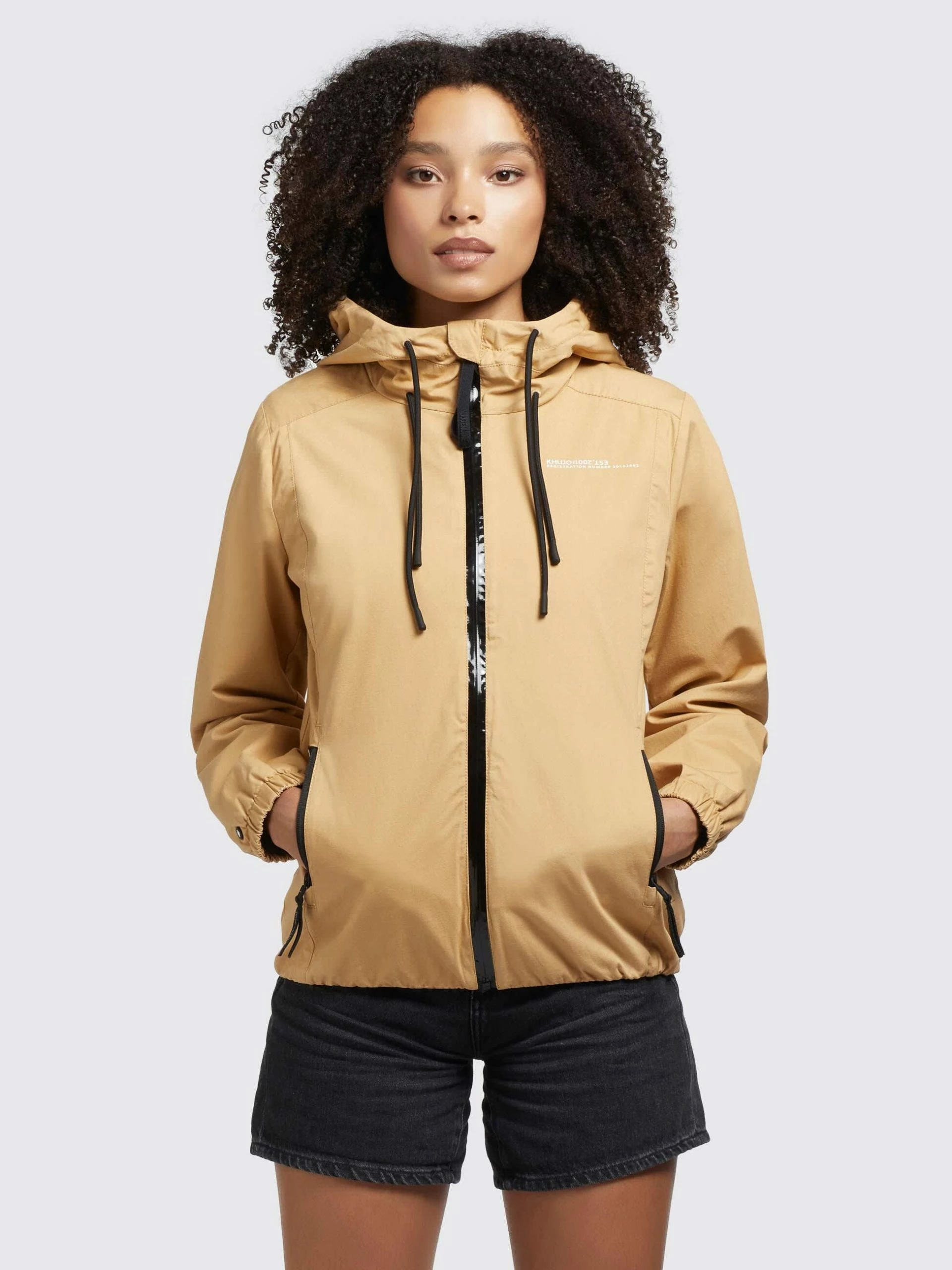 Die khujo Jacke ROLAVA2 ist aus reiner Baumwolle gefertigt und mit einem leichten Innenfutter ausgestattet. Der kurze Schnitt im Regular Fit, die hoch schließende Kapuze mit doppeltem Kordelzug sowie die elastischen Abschlüsse an den Ärmelenden und dem Saum betonen den sportlichen Charakter dieser Sommerjacke. Ein wasserabweisender Reißverschluss mit Kinnschutz und Logo Applikationen an der Kapuze setzen farbige Akzente. Kleinigkeiten lassen sich sicher in den Reißverschlusstaschen verstauen.