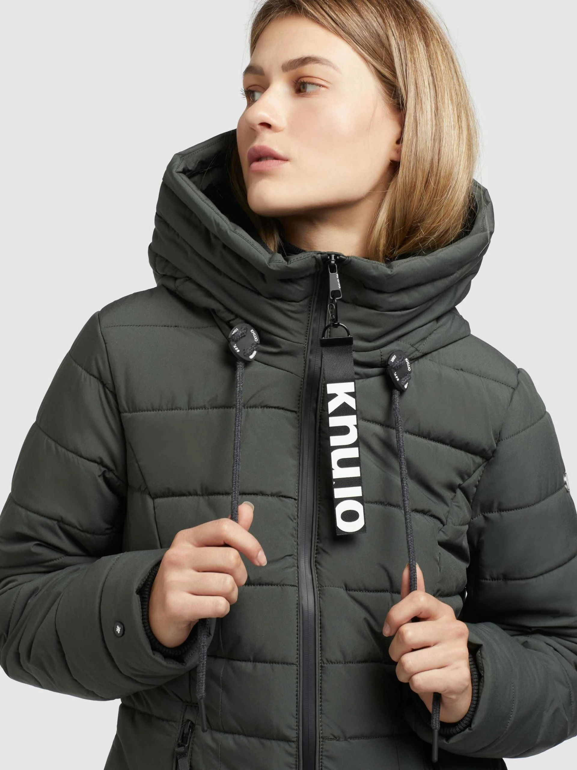 Mit einer leichten Wattierung und einem Gehschlitz mit Reißverschluss für ausreichend Bewegungsfreiheit begeistert der khujo Mantel CASCA LIGHT in dieser Saison. Diese im Slim Fit geschnittene Steppjacke ist mit einem Kordelzug an der hoch schließenden Kapuze, einem integrierten Strickkragen und einem Zwei-Wege-Reißverschluss sowie Reißverschlusstaschen mit einer wasserabweisenden Gummierung ausgestattet. Die Taschenbeutel mit Fleece schützen zudem die Hände bei frostigen Temperaturen.