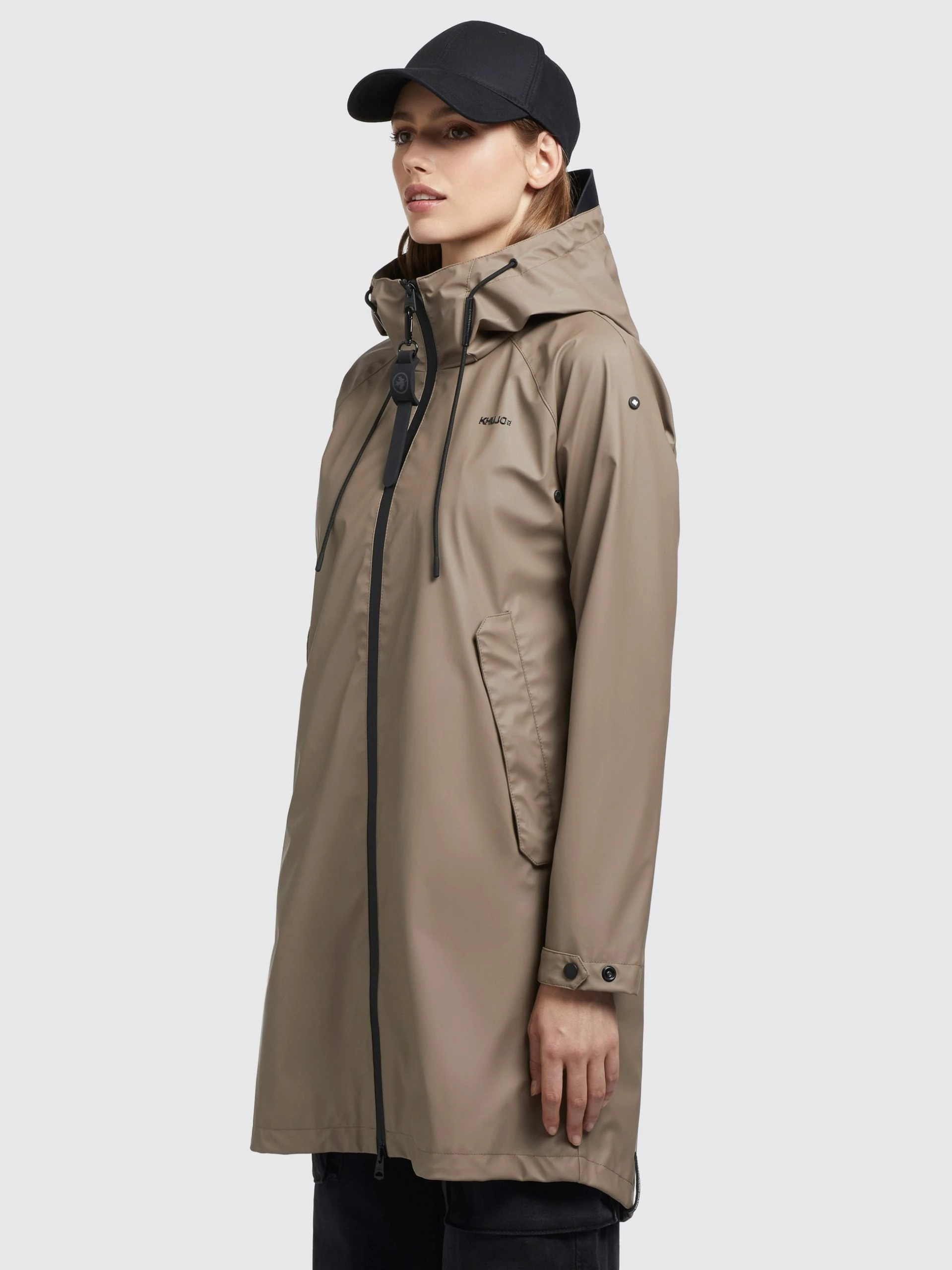 Der lässige khujo Mantel FANKA schützt dank des beschichteten Obermaterials und einer Kapuze mit Kordelzug vor Wind und Regen. Ein wasserabweisender Zwei-Wege-Reißverschluss, ein leichtes Innenfutter, eine Rückenpasse mit Öffnungsschlitz und Belüftungsösen unter den Armen sorgen für eine stylische Mischung aus Kurzmantel und Regenjacke mit besonderem Tragekomfort. In den Eingrifftaschen mit Druckknöpfen und einer Innentasche lassen sich zudem Kleinigkeiten prima verstauen.