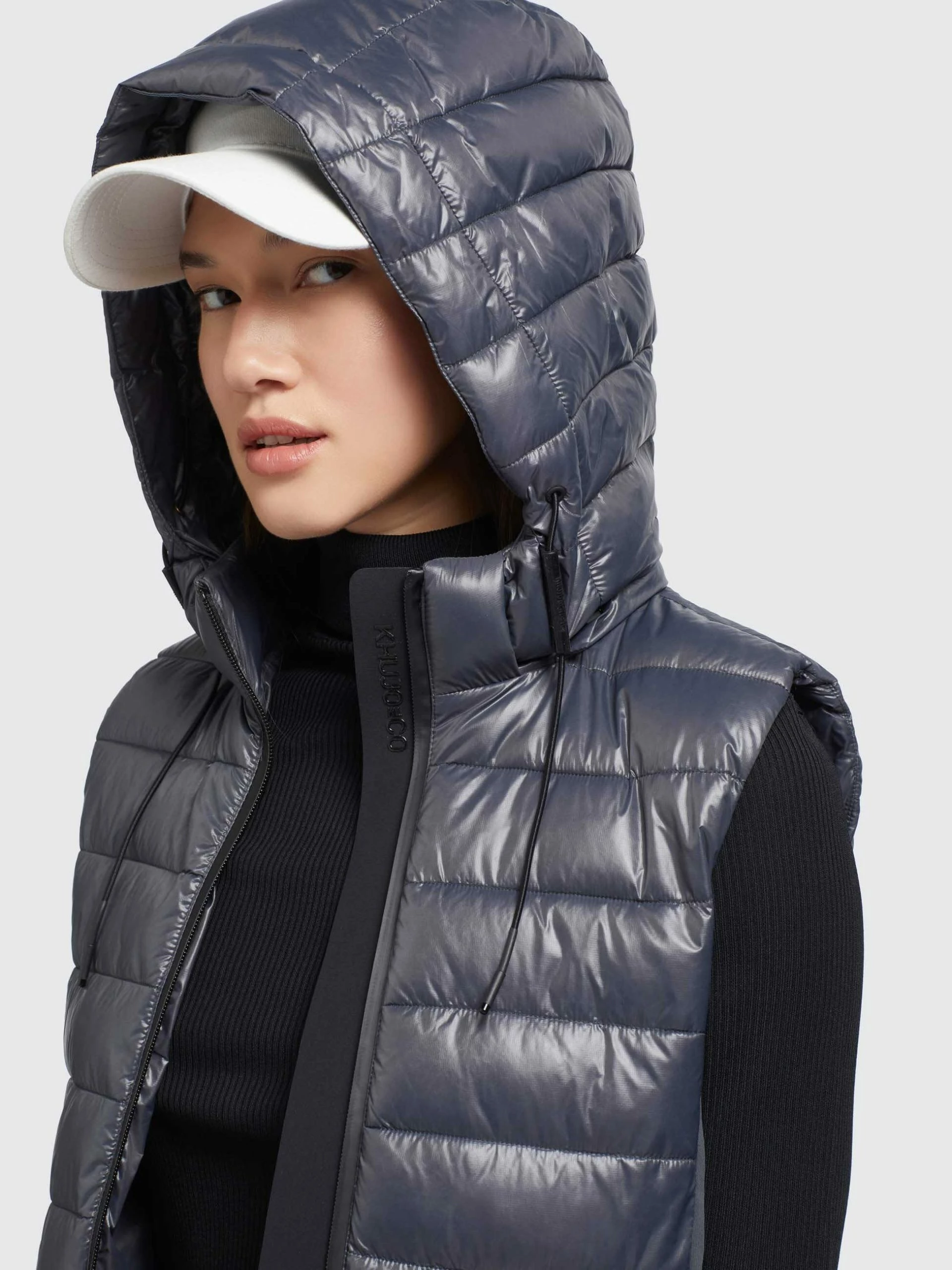 Die glänzende khujo Weste BECCA SHINY mit abnehmbarer Kapuze und einem elastischen Kordelzug sowie einer leichten Wattierung in der gesteppten Vorderseite, Kapuze und dem Rückenteil lässt sich vielseitig kombinieren. Dank einem Reißverschluss und seitlichen Reißverschlusstaschen mit einer wasserabweisenden Beschichtung, einer Windschutzblende und einem verstärkten Stehkragen bist Du mit dieser Steppweste gut ausgestattet.