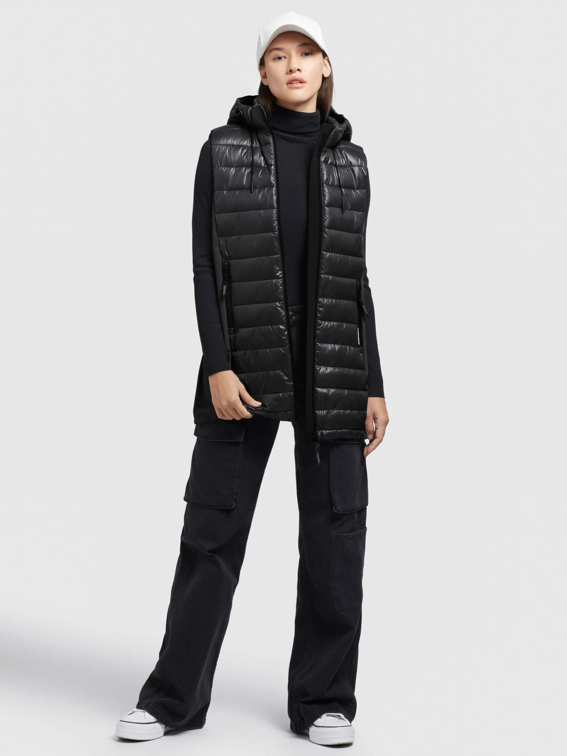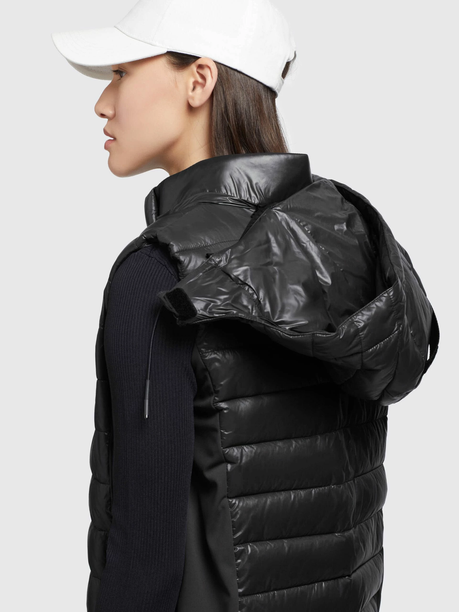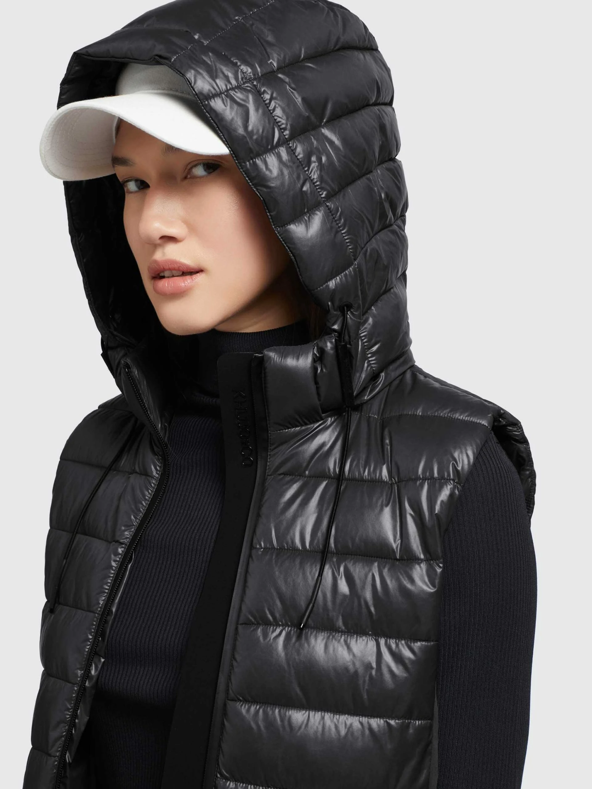 Die glänzende khujo Weste BECCA SHINY mit abnehmbarer Kapuze und einem elastischen Kordelzug sowie einer leichten Wattierung in der gesteppten Vorderseite, Kapuze und dem Rückenteil lässt sich vielseitig kombinieren. Dank einem Reißverschluss und seitlichen Reißverschlusstaschen mit einer wasserabweisenden Beschichtung, einer Windschutzblende und einem verstärkten Stehkragen bist Du mit dieser Steppweste gut ausgestattet.